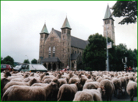 Het verplaatsen van de schapen van de berg naar de Hoge fronten of de Maasdijken gebeurt allemaal te voet, onder begeleiding van Els en haar honden. Het is een vreemd zicht om deze stadskudde gade te slaan.